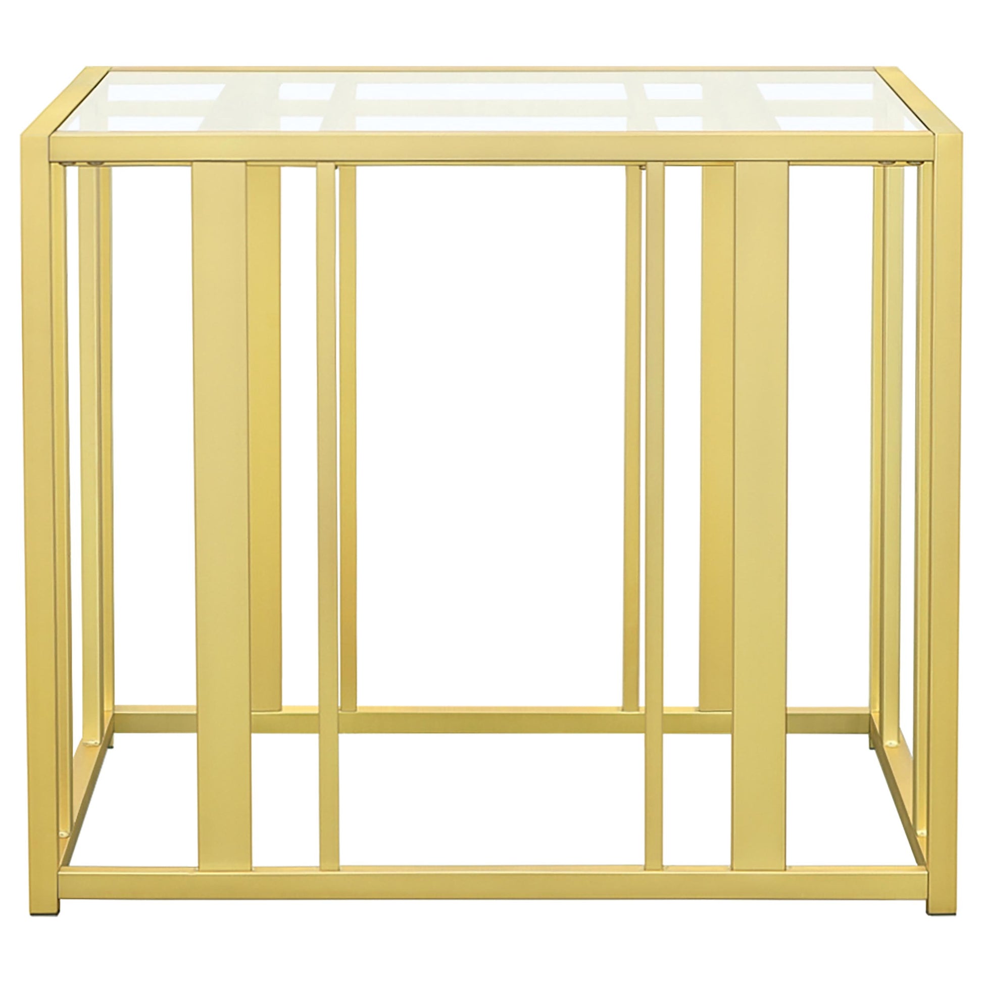 This coffee table set includes a rectangular coffee table and a matching end table, both featuring tempered glass tops and geometric bases crafted from heavy-gauge metal. The open-frame design exudes modern elegance while offering durability and functionality. Scratch-resistant materials ensure lasting quality, making the set ideal for organizing essentials or displaying decor. Its cohesive design provides a sleek, contemporary look for any living room.