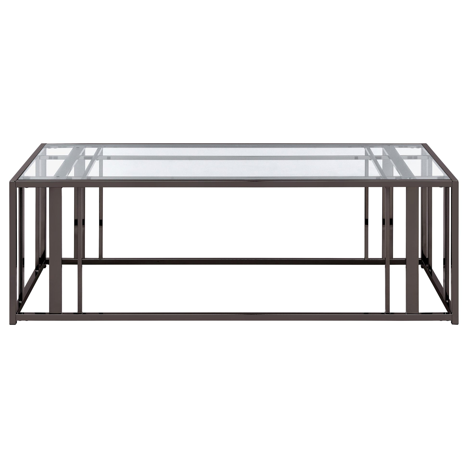 This coffee table set includes a rectangular coffee table and a matching end table, both featuring tempered glass tops and geometric bases crafted from heavy-gauge metal. The open-frame design exudes modern elegance while offering durability and functionality. Scratch-resistant materials ensure lasting quality, making the set ideal for organizing essentials or displaying decor. Its cohesive design provides a sleek, contemporary look for any living room.