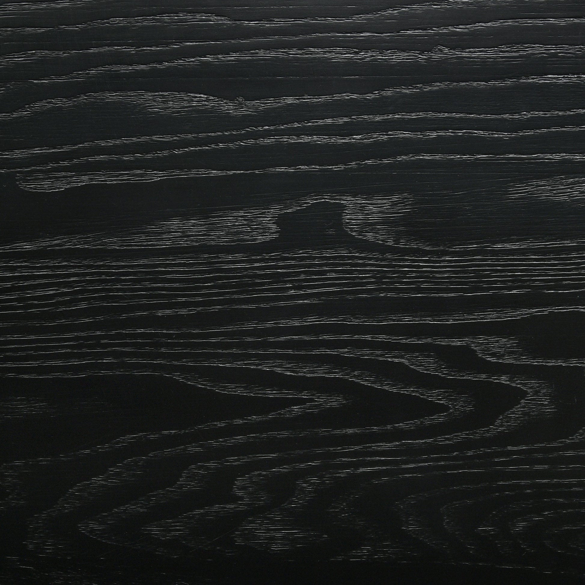 • Handwoven rattan backrests offer organic texture against the clean black wood chair frames