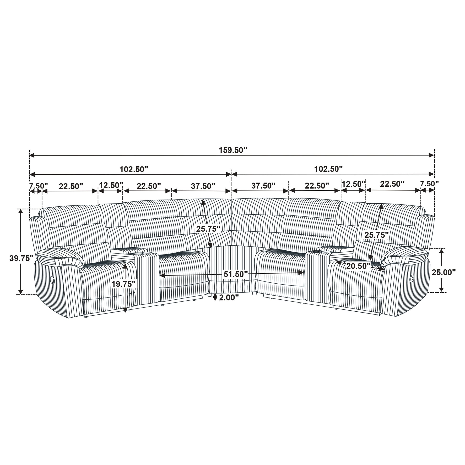 Unwind in sculpted comfort with this reclining sectional sofa, where bold texture meets irresistible softness. Wrapped in wide-wale corduroy upholstery, its velvety ribbed finish creates visual depth and an inviting touch. Deep channel tufting enhances the plush profile, while dual consoles offer lift-top storage and stainless steel cup holders. With pocket coil seating beneath every cushion, this sectional is a luxurious retreat for everyday lounging and connection.