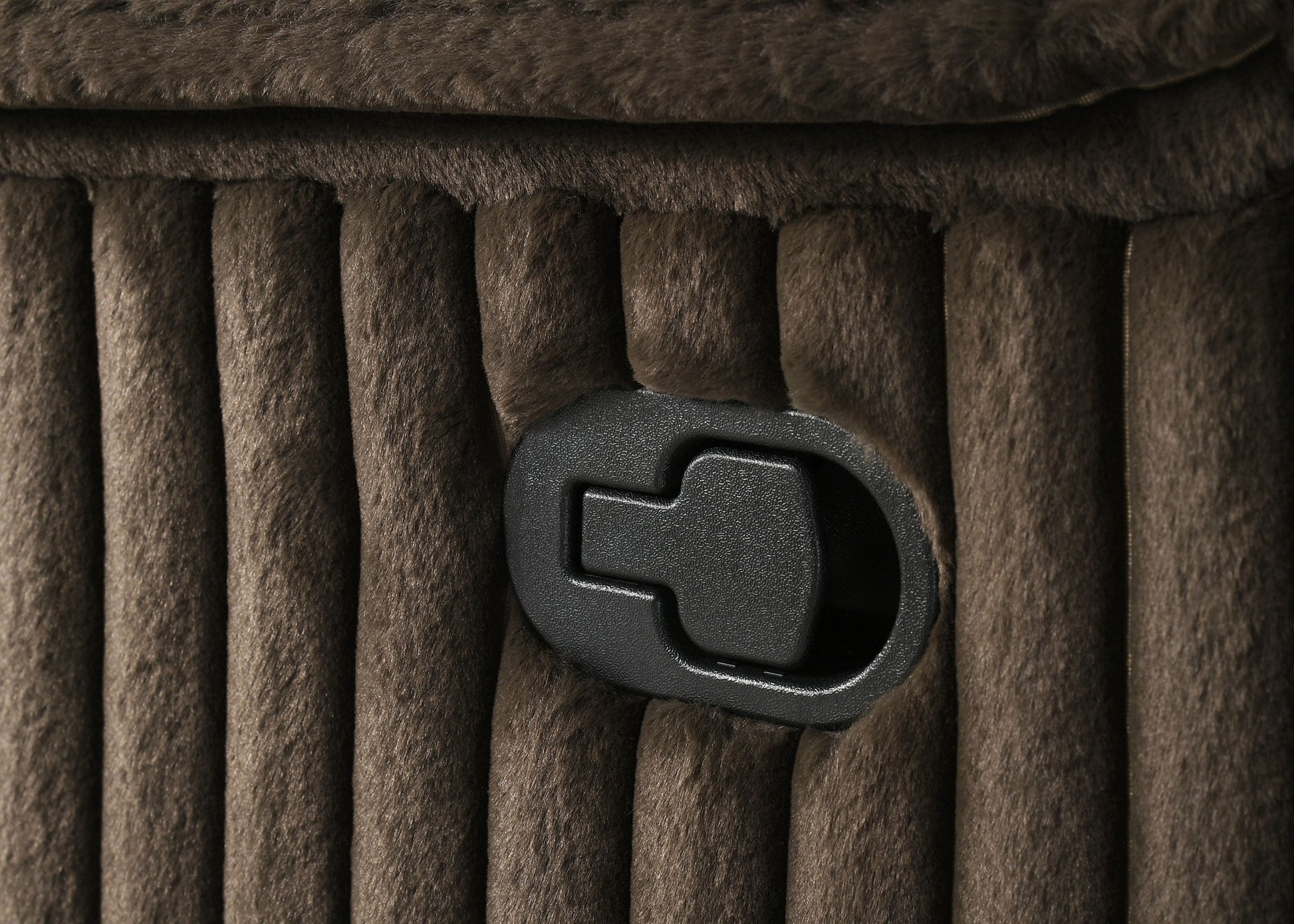 • Chocolate brown wide-wale corduroy upholstery offers soft velvety texture and elevated visual interest