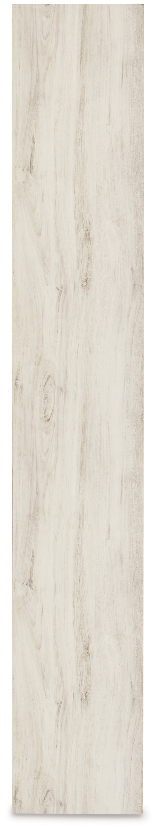 Details | Includes TV stand, bridge and 2 piers, Made of engineered wood (MDF/particleboard) and decorative laminate, Wispy white finish over replicated oak grain with authentic touch, One open storage area and 2 single-door storage areas (each with adjustable/removable shelf), Each pier with 4 shelves (3 adjustable), Cutouts for wire management and ventilation, Assembly required | |