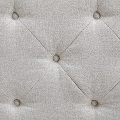 Contemporary style gets practical with this bench. The tufted beige seat cushion is hinged to allow easy access to whatever you need to hide in plain sight. The raised edges give the impression of arms on this cushioned seat while the light brown finished wood legs help it blend with many different modern styles.