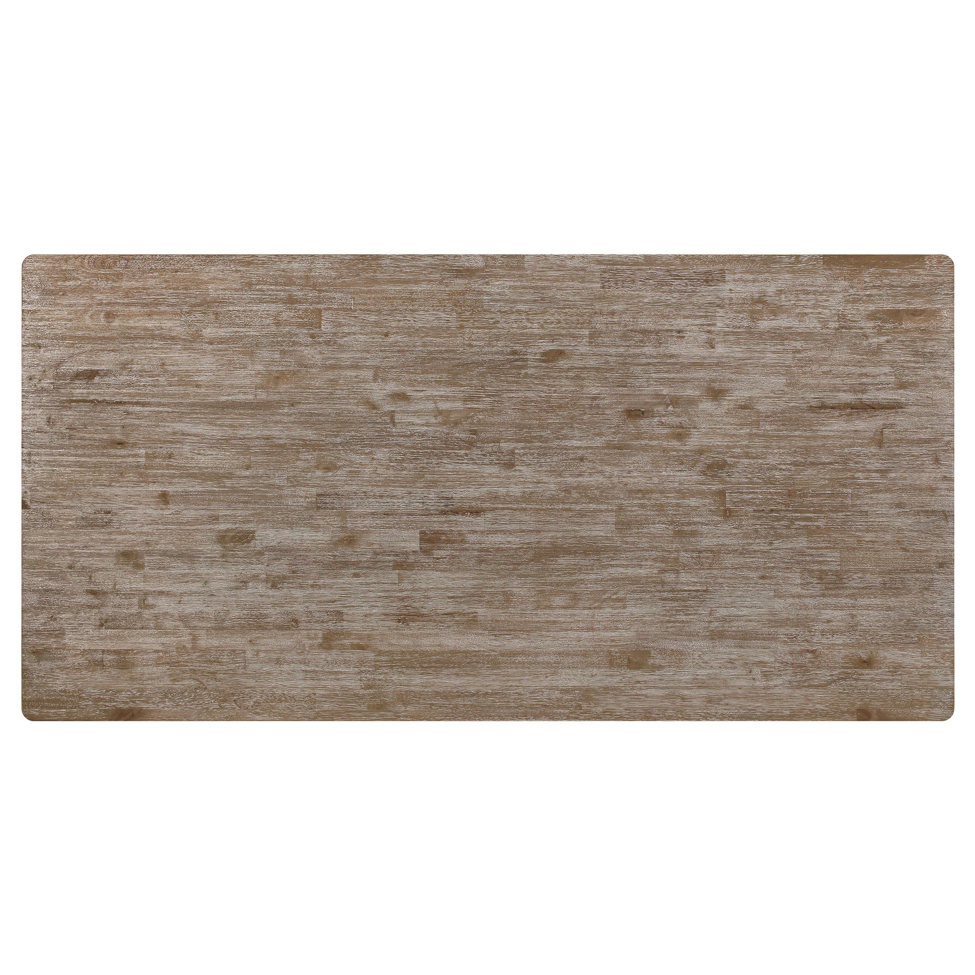 • Elegant tabletop features a brown brushed finish top and charcoal sand through finish base and legs