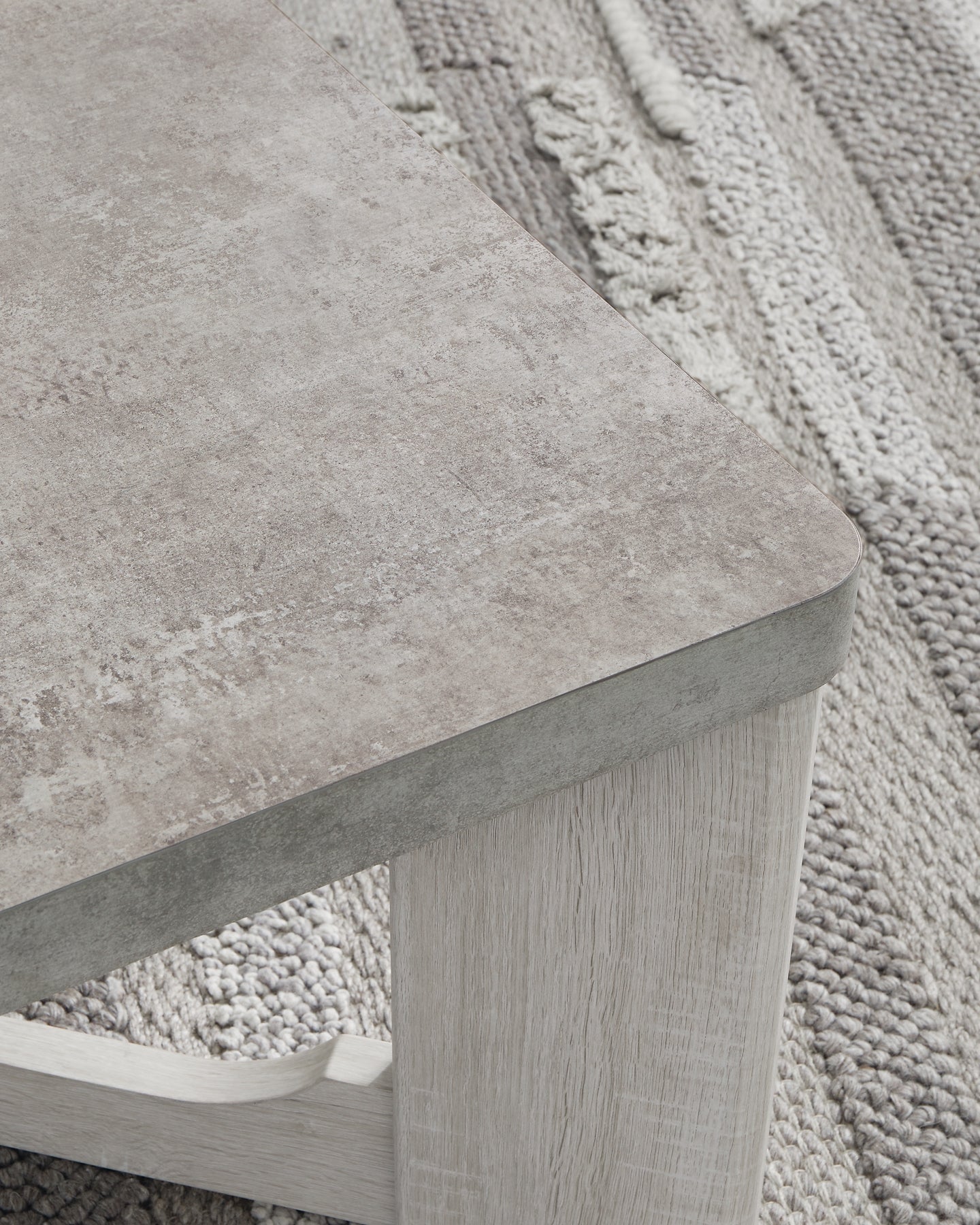 Details | Includes coffee table and 2 end tables, Made with decorative laminates and MDF substrate, Frame with whitewash wood grain finish, Faux cement melamine tabletop, MEGA-TUFF® melamine surfaces are made of easy-clean melamine which is heat-, scratch-, water- and stain-resistant, Assembly required | |