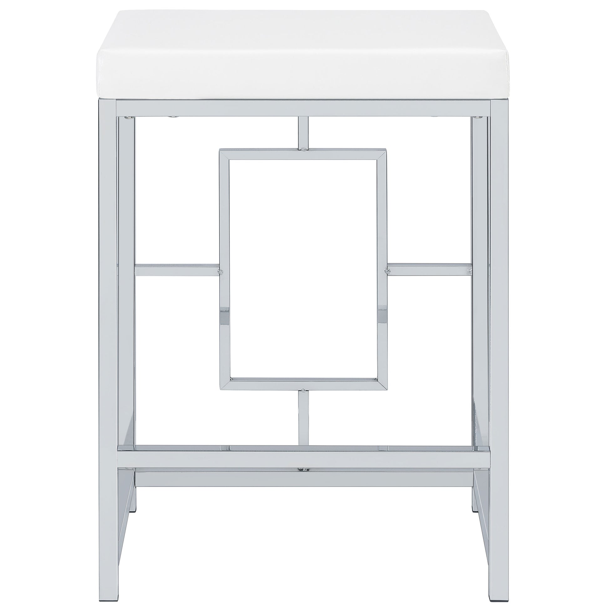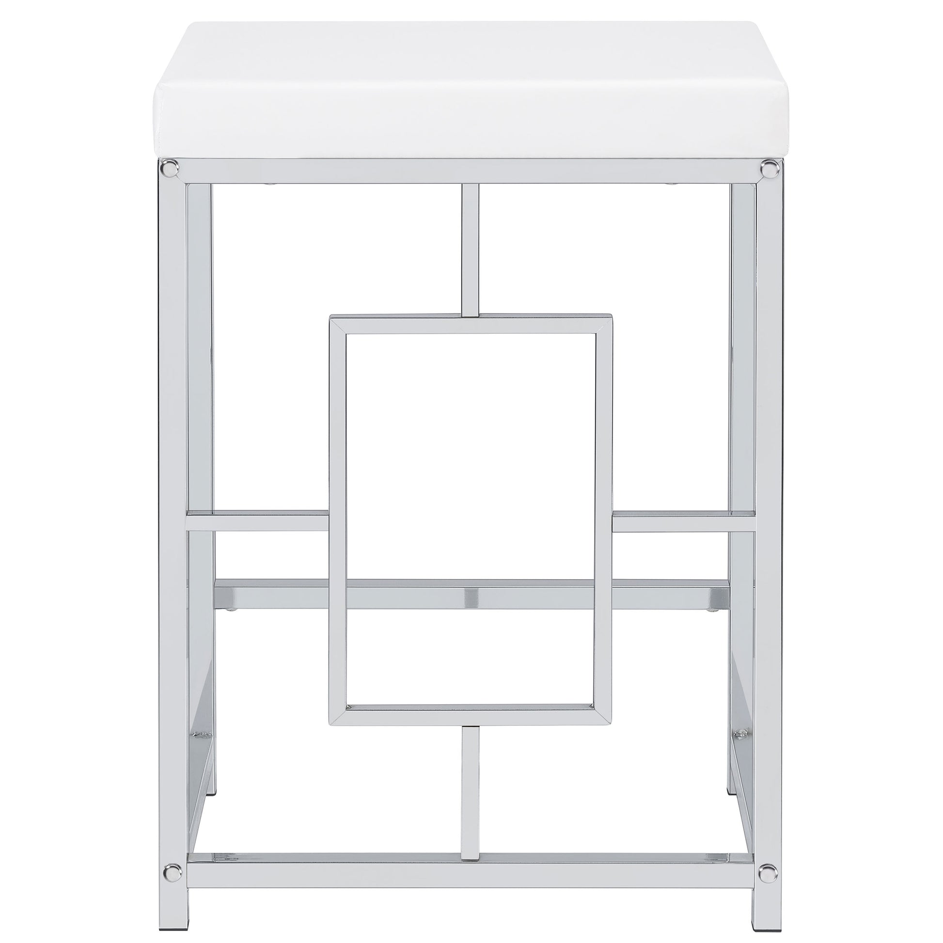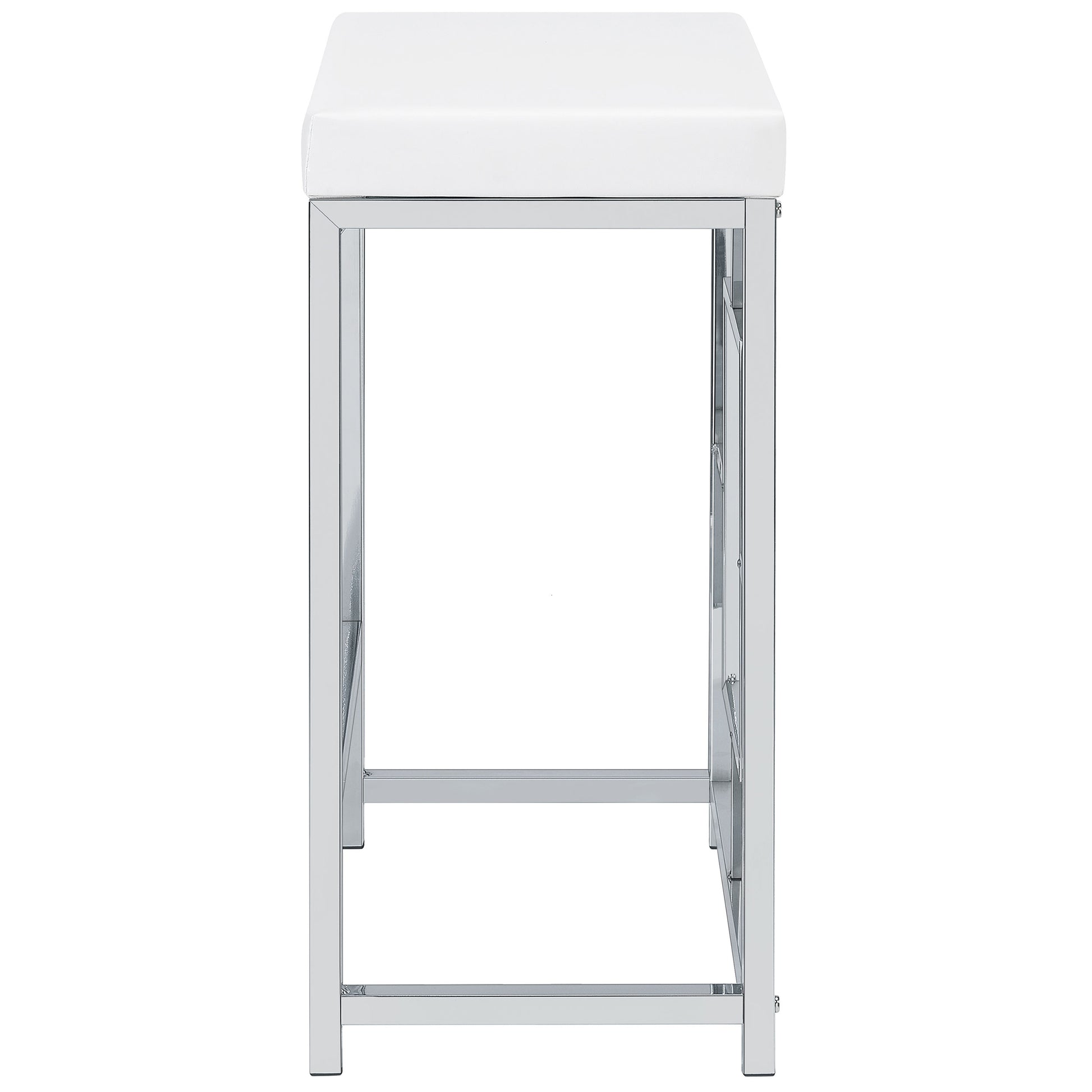 • Silver metal finish perfectly complemented with white tabletops and faux leather for a crisp look