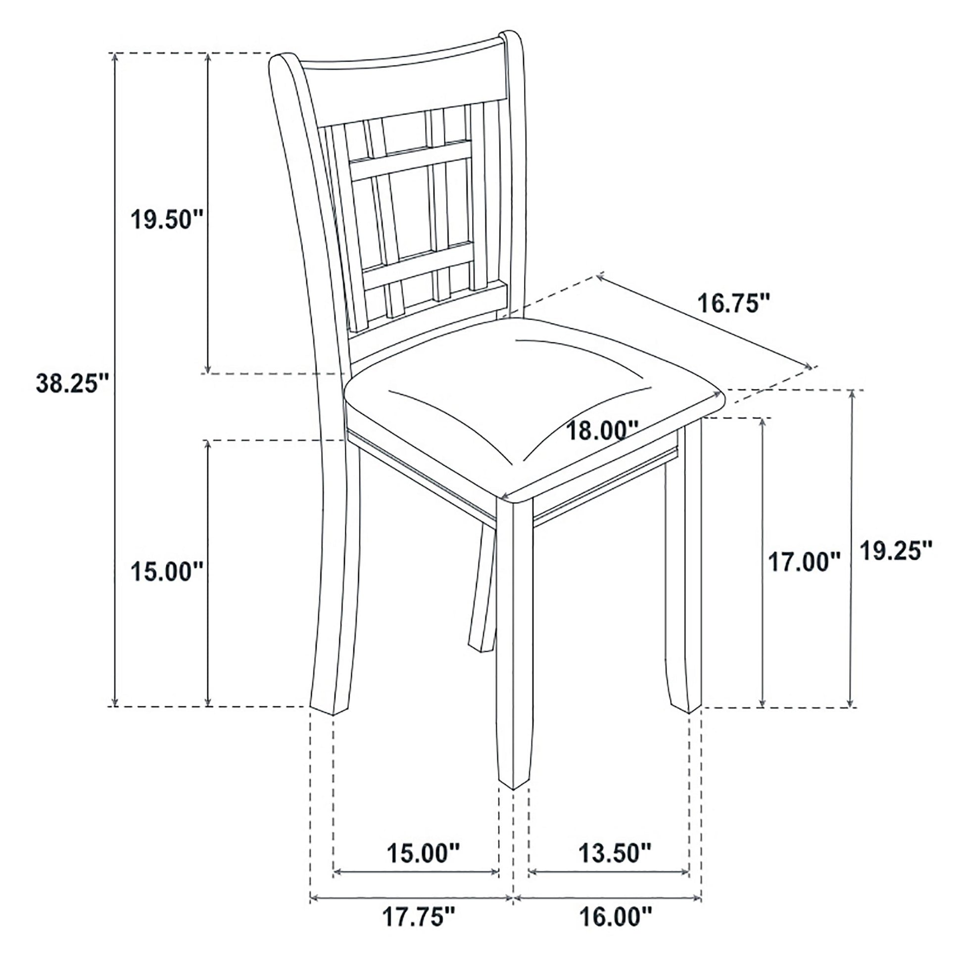 • Black leatherette upholstery adorns the seat cushions on side chairs