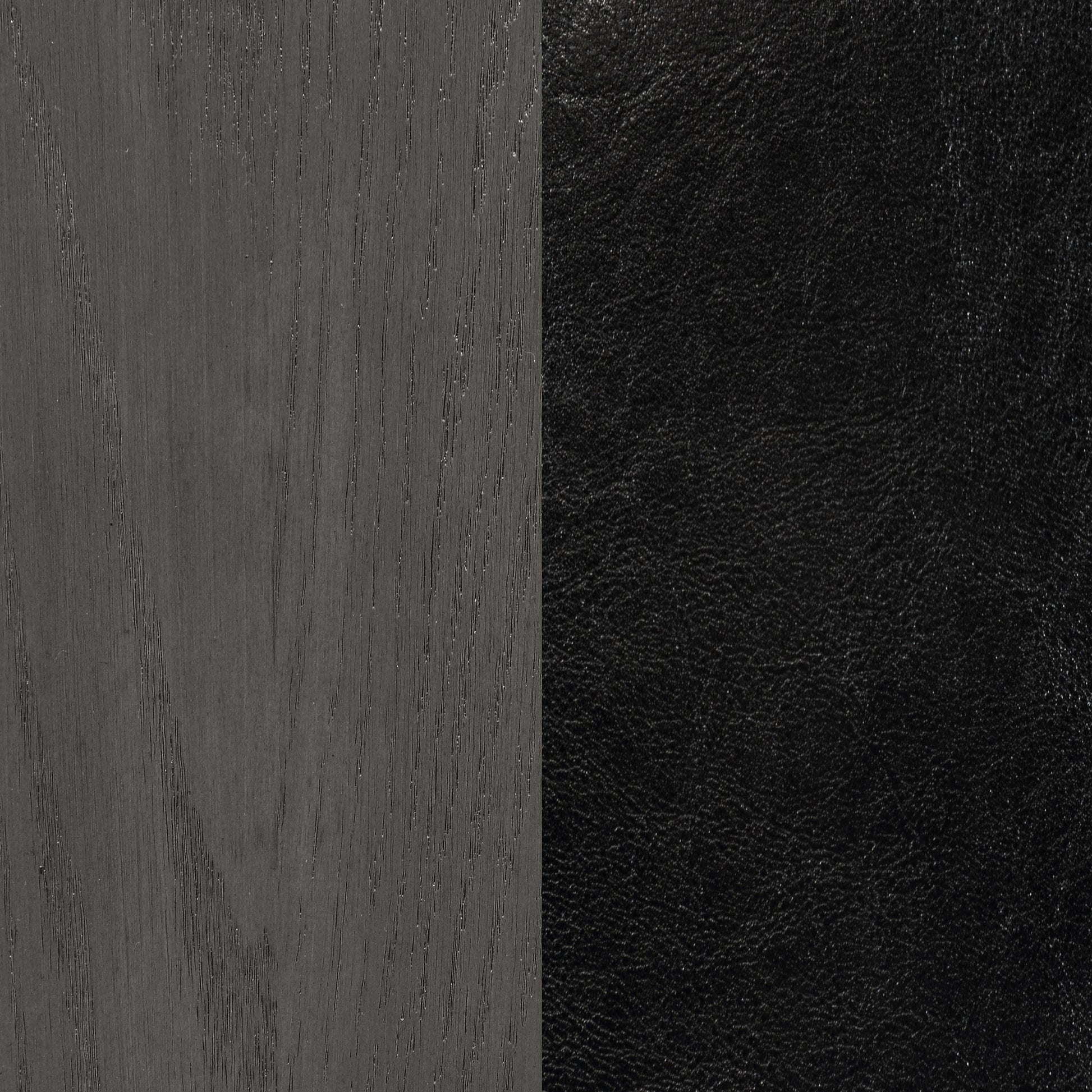 A combination of vertical and horizontal slats creates a window pane effect for this charming transitional dining chair. An armless silhouette is a versatile choice for relaxed, everyday living. The chair boasts a medium grey finish over rubberwood construction. Webbed seating and black faux leather upholstery combine for stylish comfort. Invite friends and family to have a seat and enjoy a lovely meal.