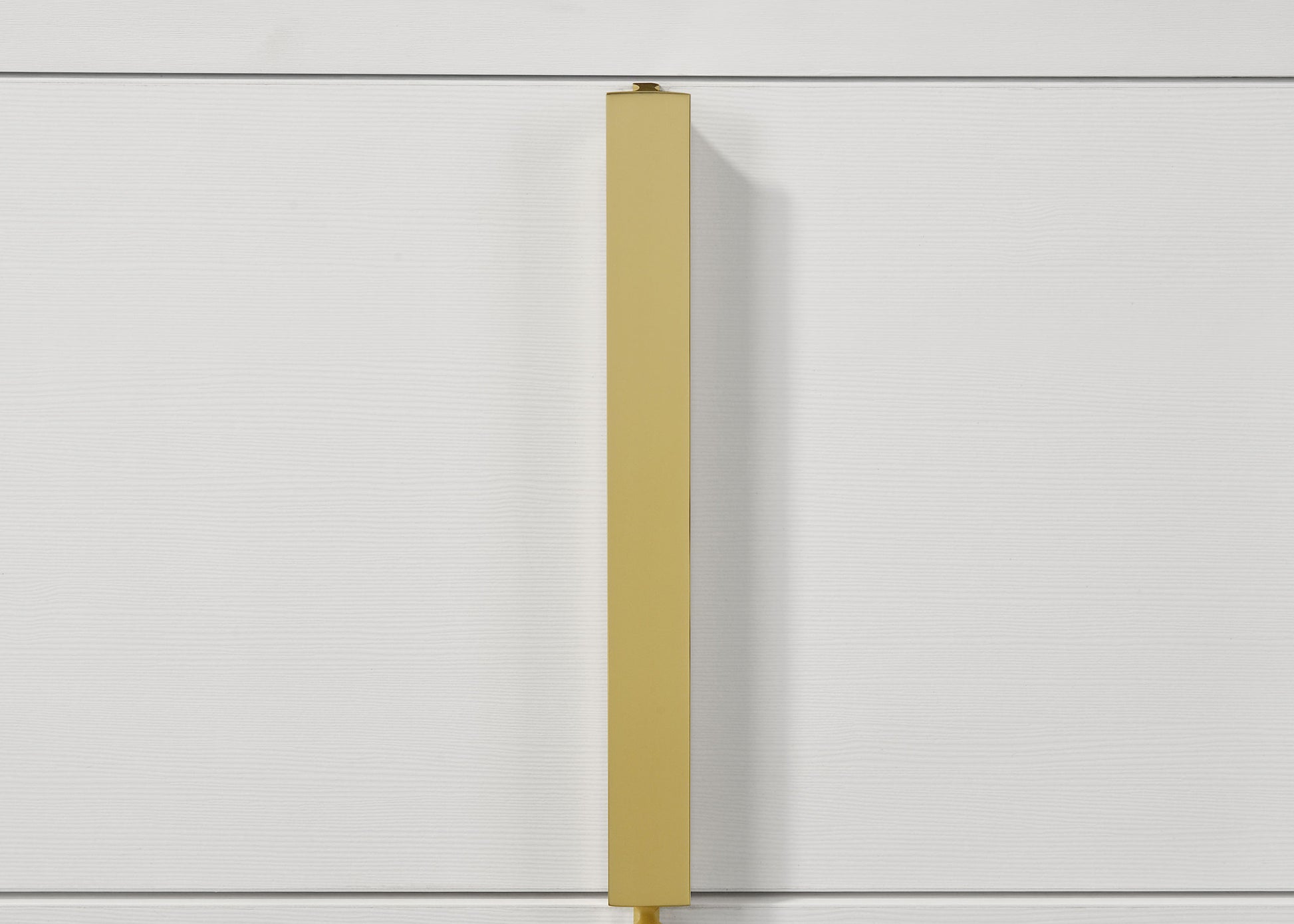 • Wood products construction with versatile finish and gold finish metal accents for geometric linear effect