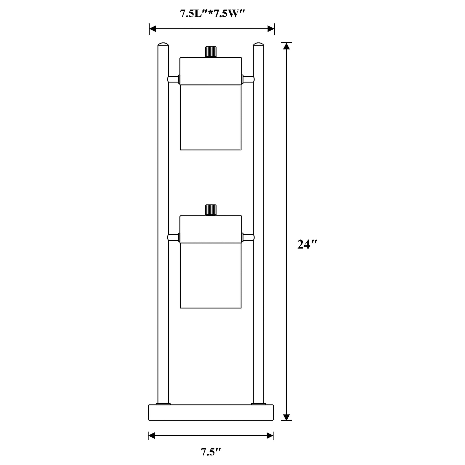 • Modern table lamp with dual swivel lights in a compact vertical double H-frame