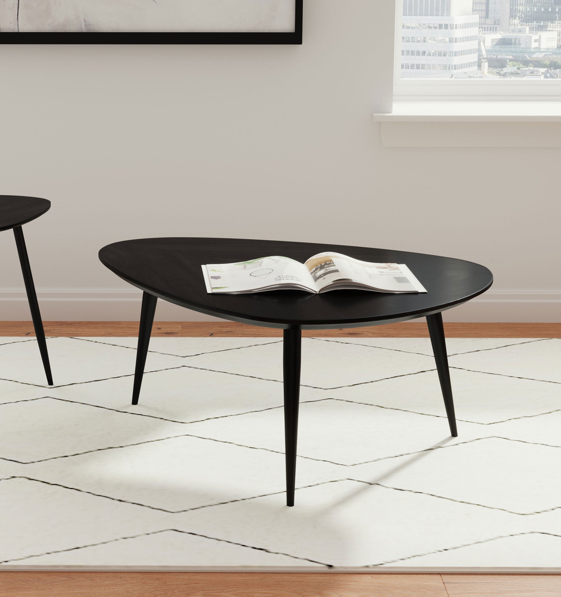 Odessa Triangular Solid Wood Coffee Table Black