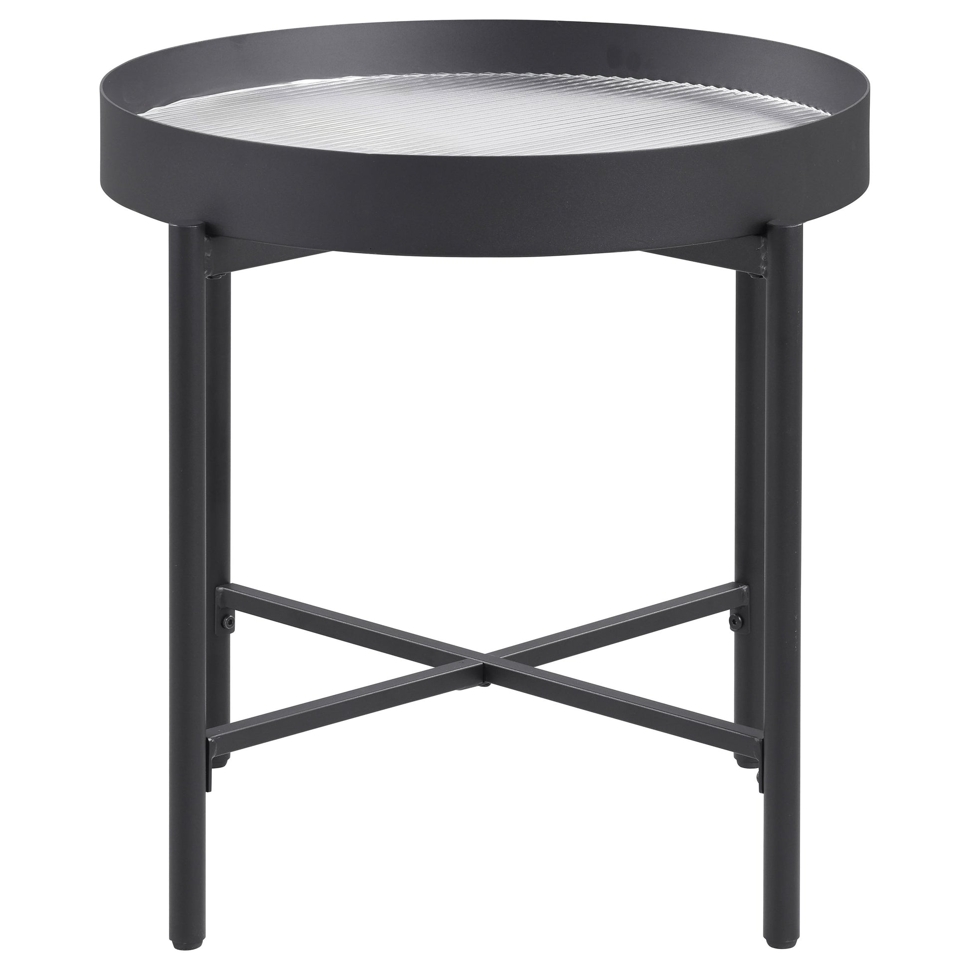 • Coffee table’s tempered reeded glass top adds depth and texture