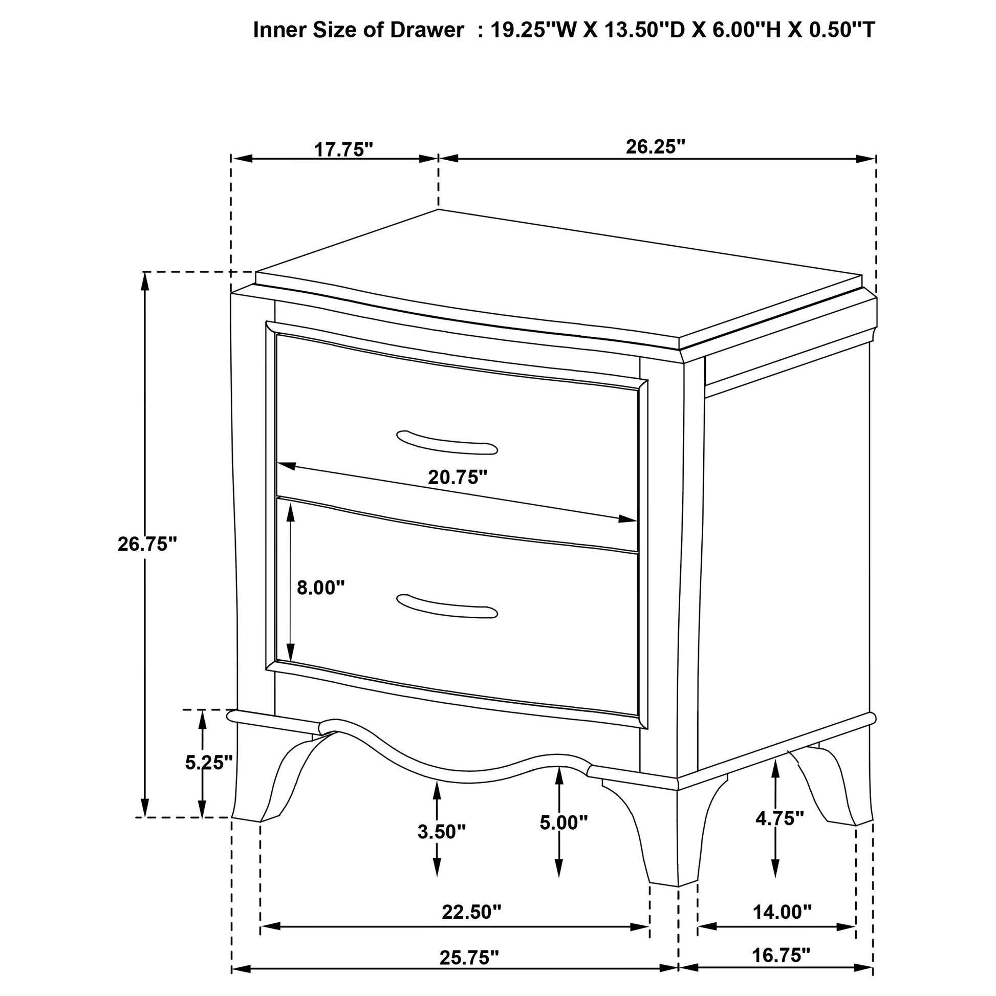 This French Provincial-inspired nightstand blends classic elegance with modern convenience. Crafted from solid poplar, engineered wood, and mango veneer, it showcases a washed mango finish that highlights the natural wood grain. Two spacious drawers provide ample bedside storage, accented with sleek metal handles. Designed for today’s needs, it offers built-in charging capabilities, ensuring effortless functionality while maintaining its timeless charm.
