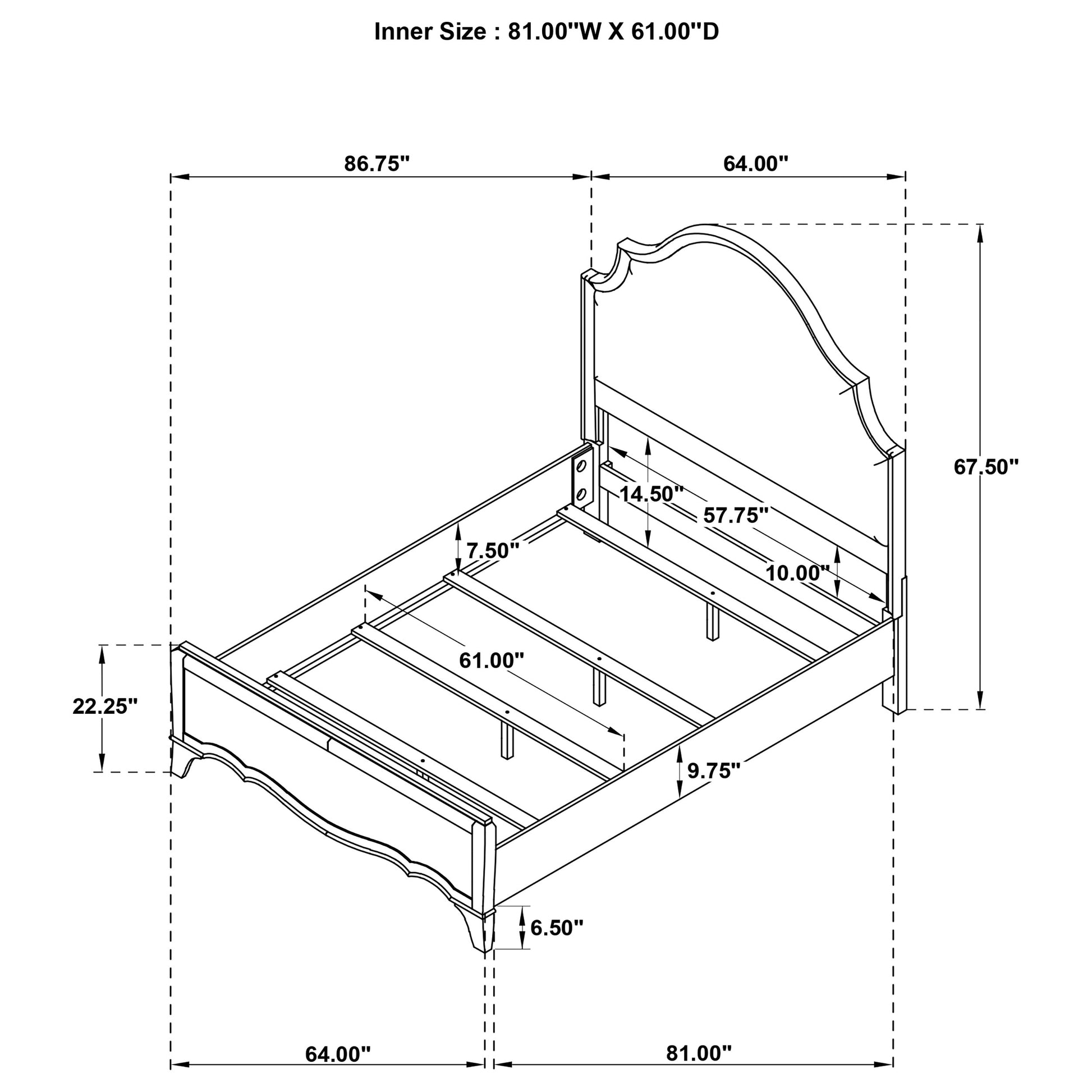 • Scalloped footboard and curved edges showcase French Provincial charm
