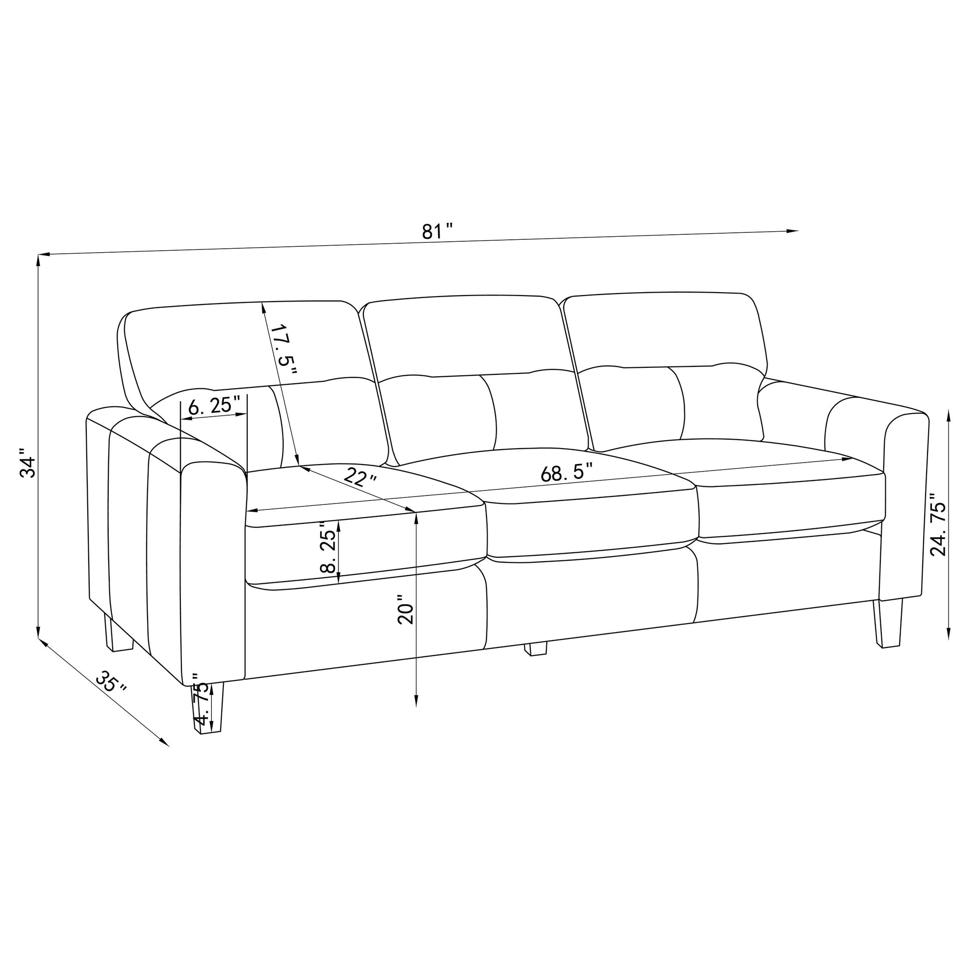 • Structured cushions provide firm support with subtle stitched definition