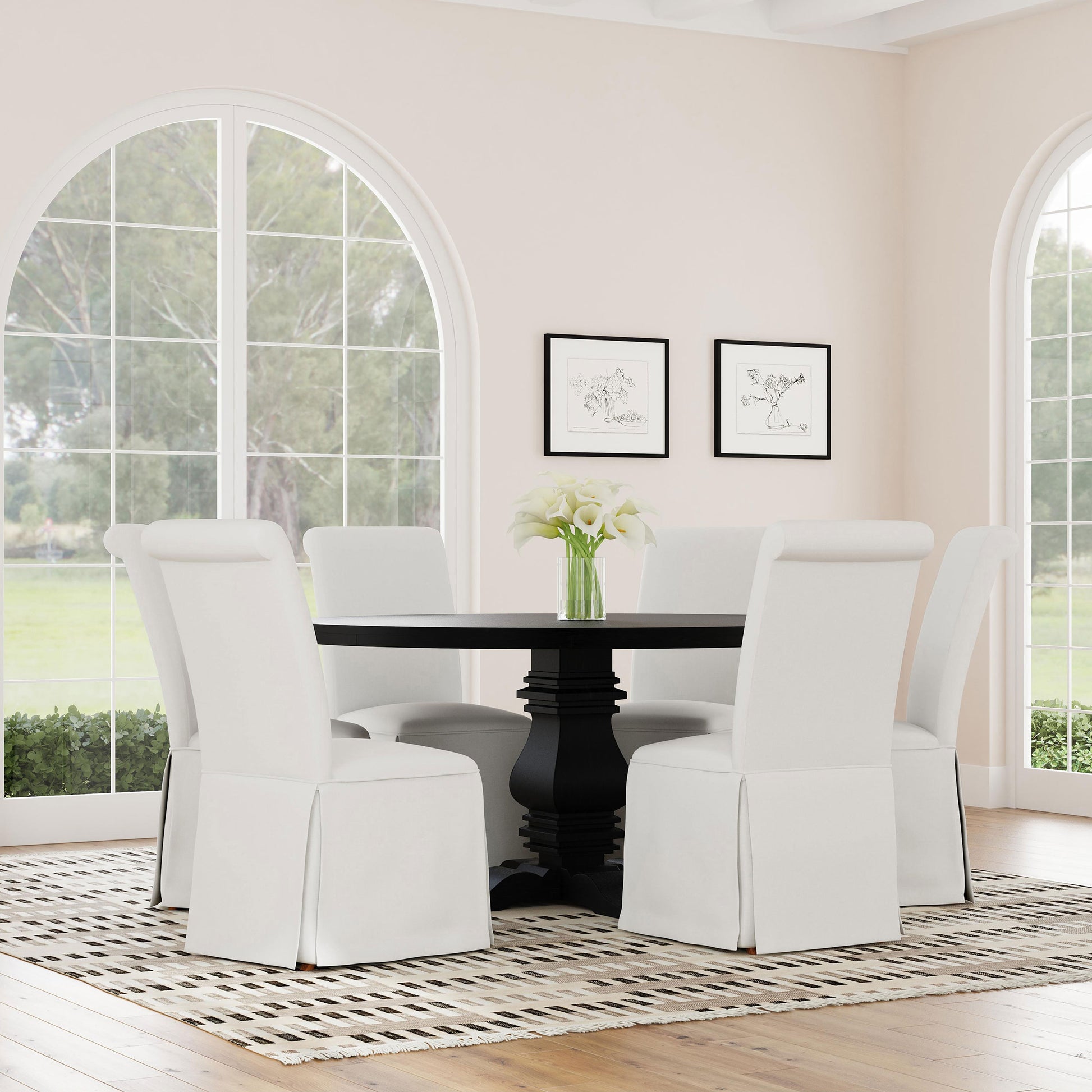 • Neutral color allows versatility, blending beautifully with a variety of dining room decor schemes