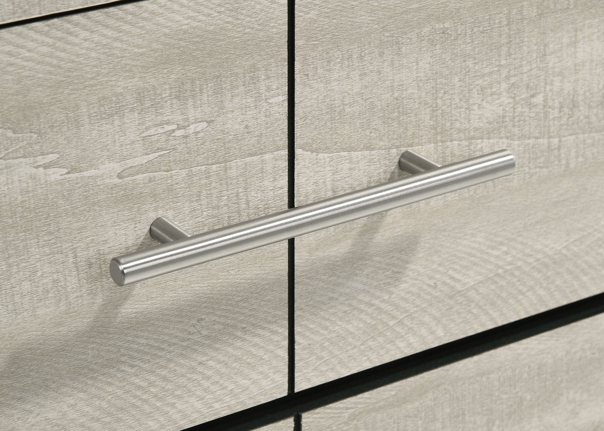 This four-drawer chest offers a stylish combination of rustic charm and modern design, making it a perfect storage solution for contemporary bedrooms. Finished in a rustic cream with rough-sawn, white-washed engineered paper veneer, it has a warm, textured appeal that’s both inviting and chic. The extra-wide polished nickel handles add a sleek, modern touch, creating a subtle contrast. Built with engineered wood, the chest features English dovetail joinery and Center metal glides for durability and smooth functionality, ensuring it meets both aesthetic and practical needs.