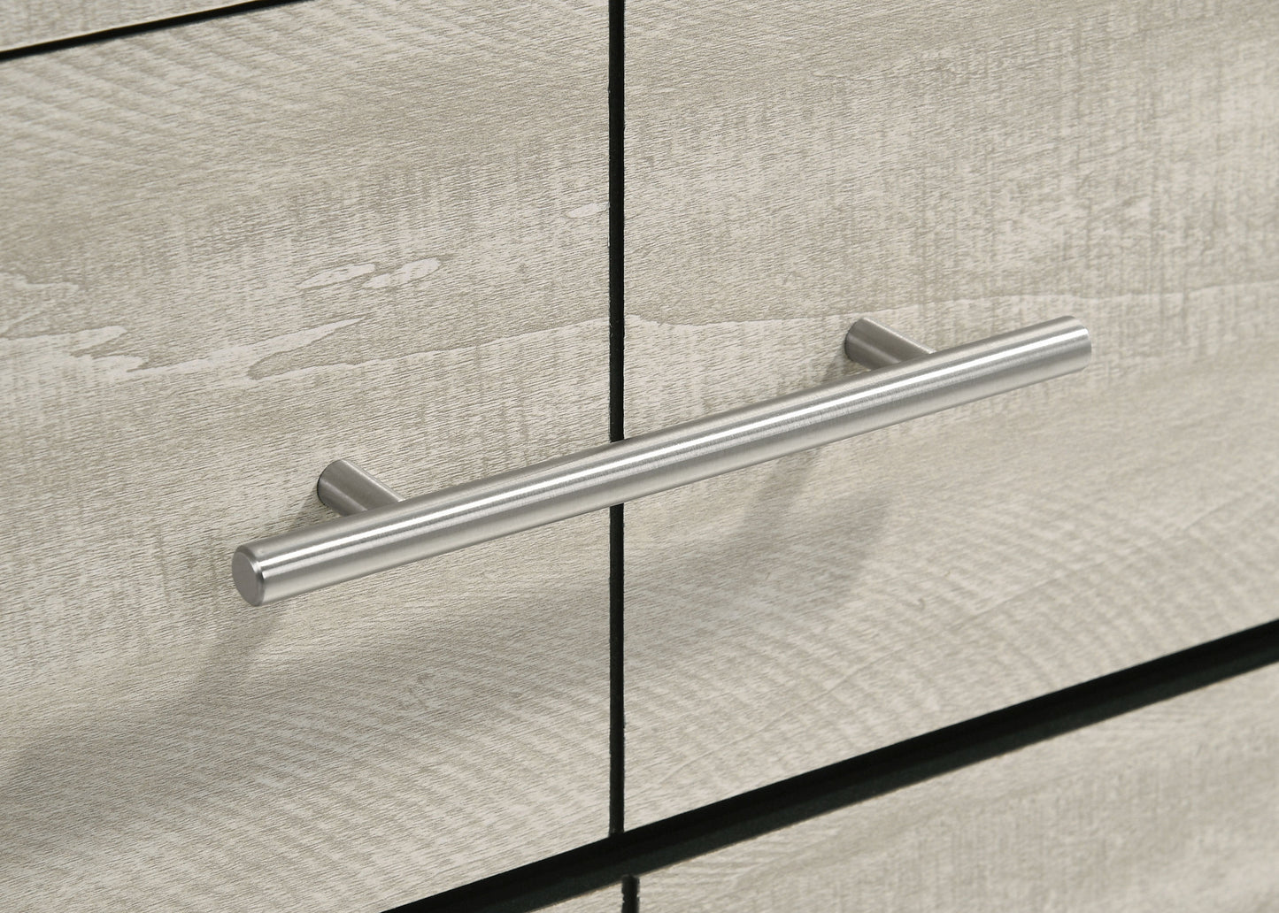 • Rustic cream finish with rough-sawn white-washed veneer for unique character