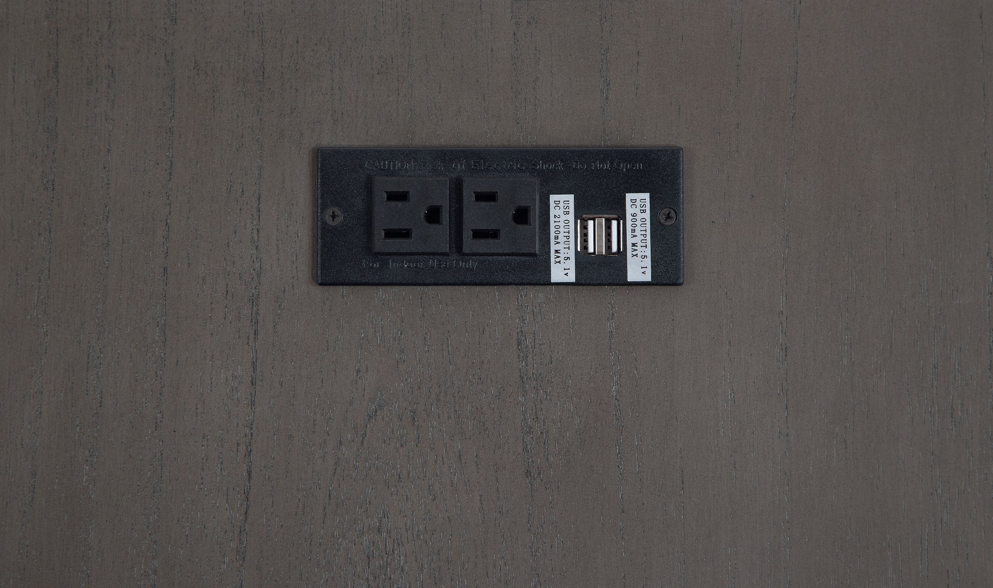 Details | Made with solid wood, wood veneer and MDF substrate, Gray wood tone finish, Table features storage cabinet, open cubby shelf and pull-out tray, 110V power supply with dual USB charging ports, Power cord included; UL Listed, Due to the use of natural materials, some variations may occur, Assembly required | |