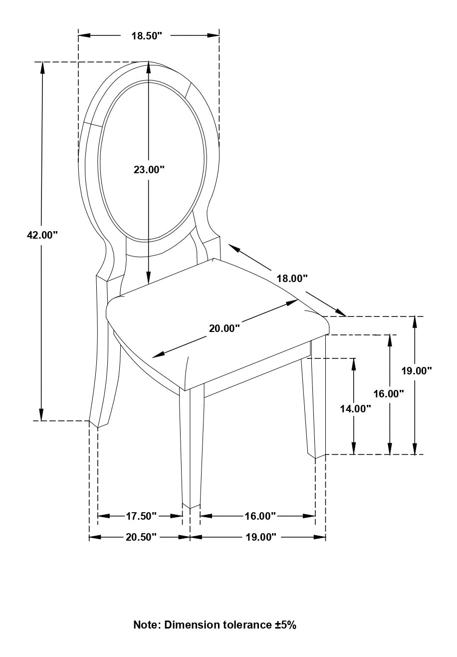 Elegant curves and contrasted finishes collide in this transitional side chair. A lovely addition to a dining space, this stunning chair can be slid up to a table for a comfortable place to sit over a long dinner, inviting you to lean back against its padded oval back and padded seats, each wrapped in a cream linen-like fabric with welt trim details. The timeless design of the Neoclassical oval backrest offers a wood trim that mirrors the rest of the wood frame. Encasing the padded elements is a rich, dark cocoa finish that lends a bold look. Square tapered legs in front and flared legs in back offer a subtle grace that completes this furniture piece.
