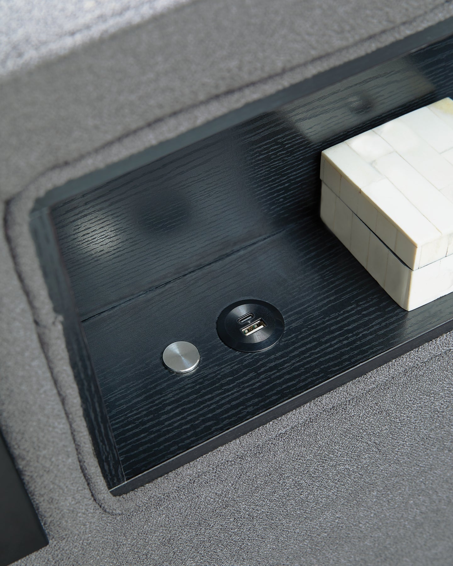 Details | Includes upholstered headboard, footboard, rails and roll slats, Made with engineered wood frames, solid wood components and foam, Polyester upholstery, Multicolored ambient LED lighting in headboard and lower footboard rail, LED reading light with articulating arm on each side of bed, Bed does not require additional foundation/box spring; accommodates most zero clearance adjustable bases, Mattress available, sold separately, Power cord included; UL Listed, Assembly required | |