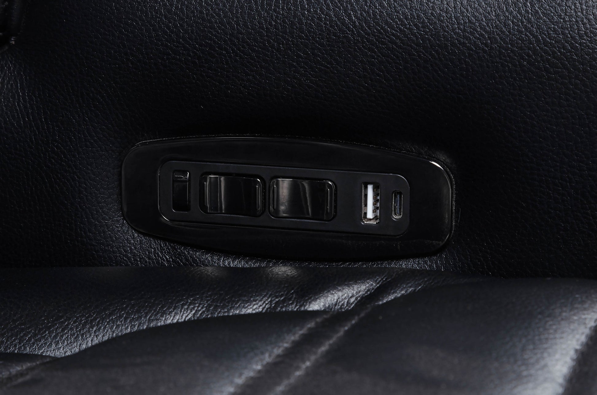 • Sofa includes drop-down console with AC outlets, USB ports, and reading lights